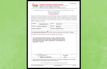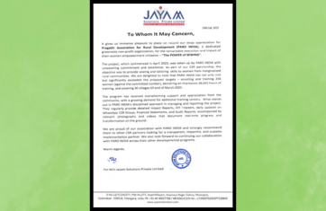 PARD INDIA received a Letter of Appreciation from the CSR partner M/s...